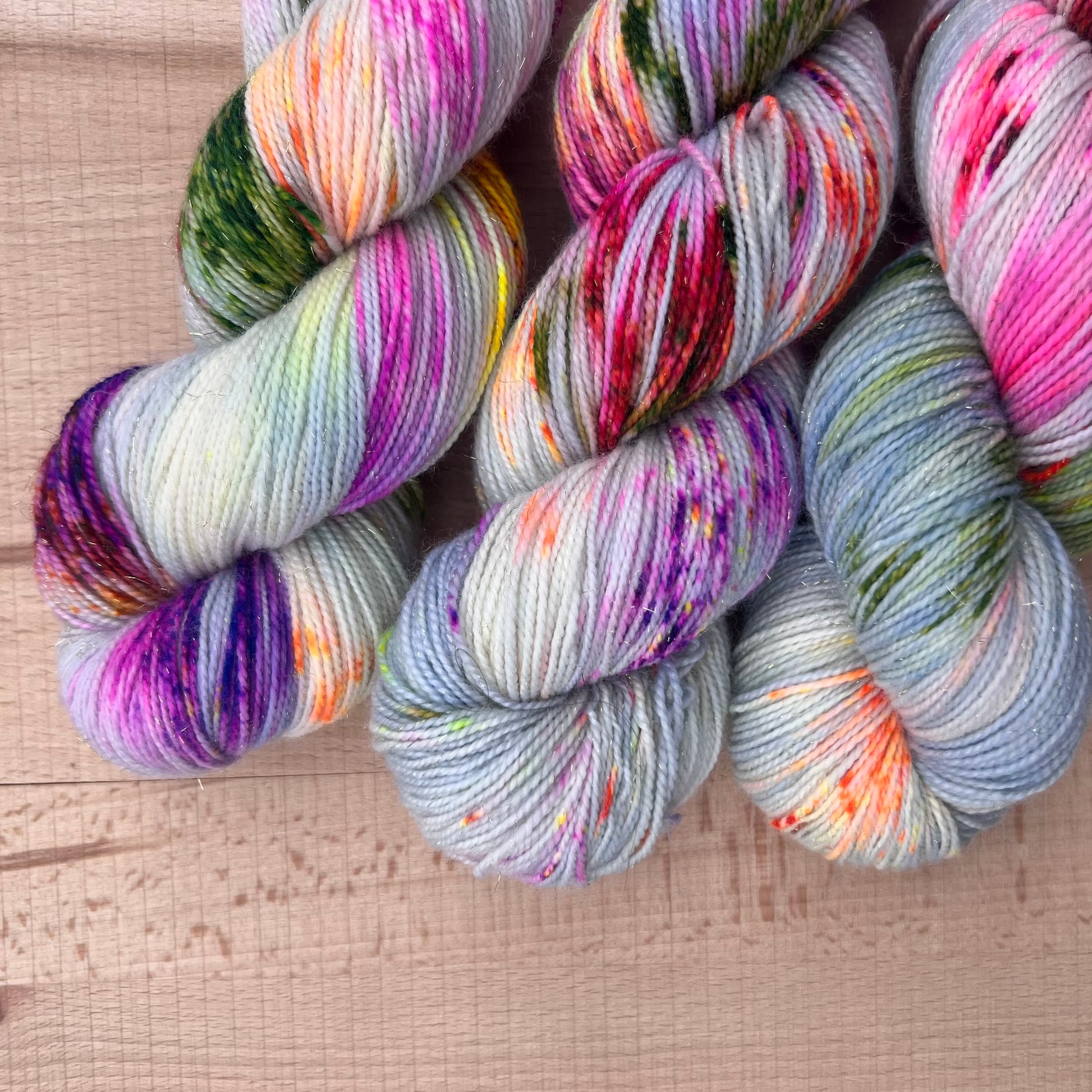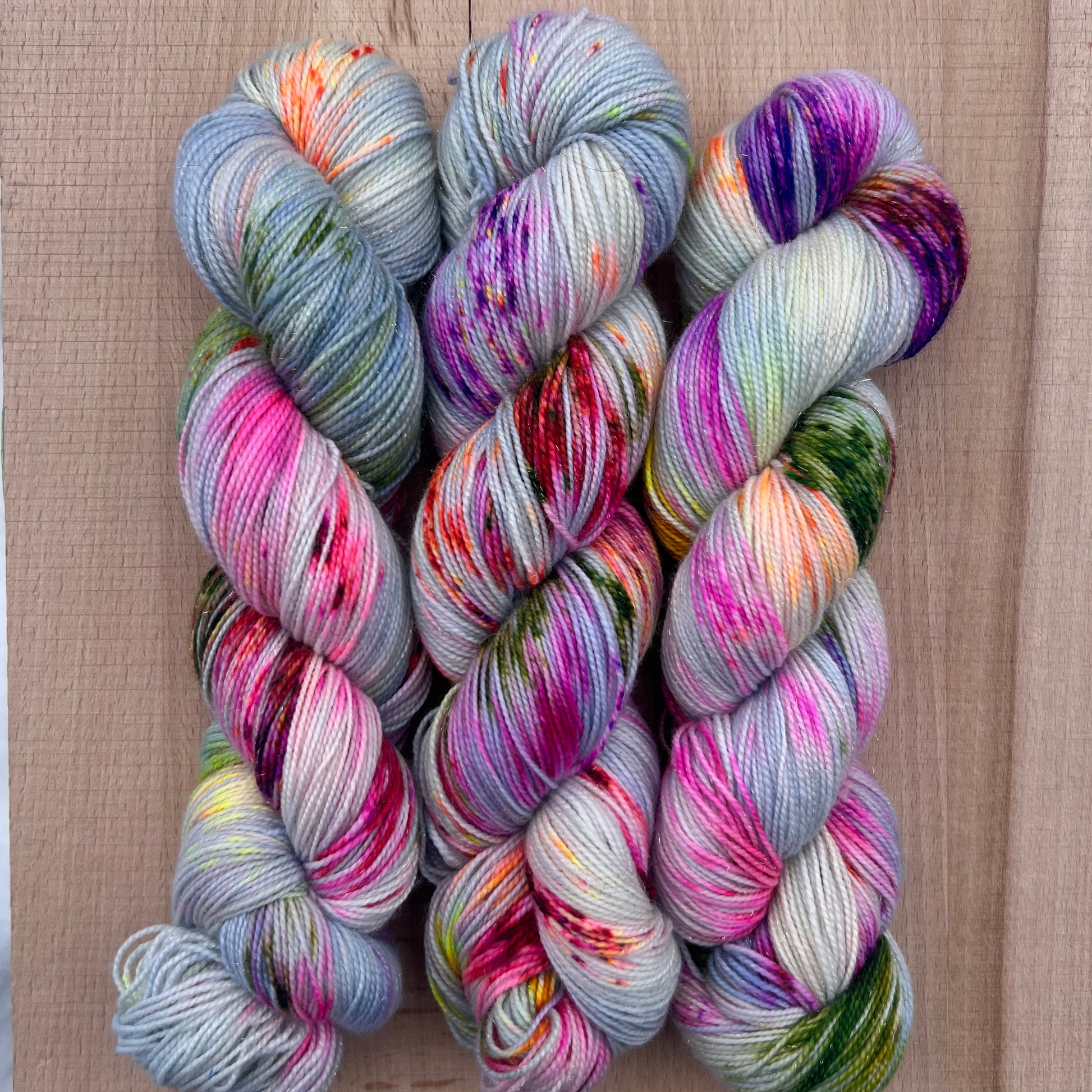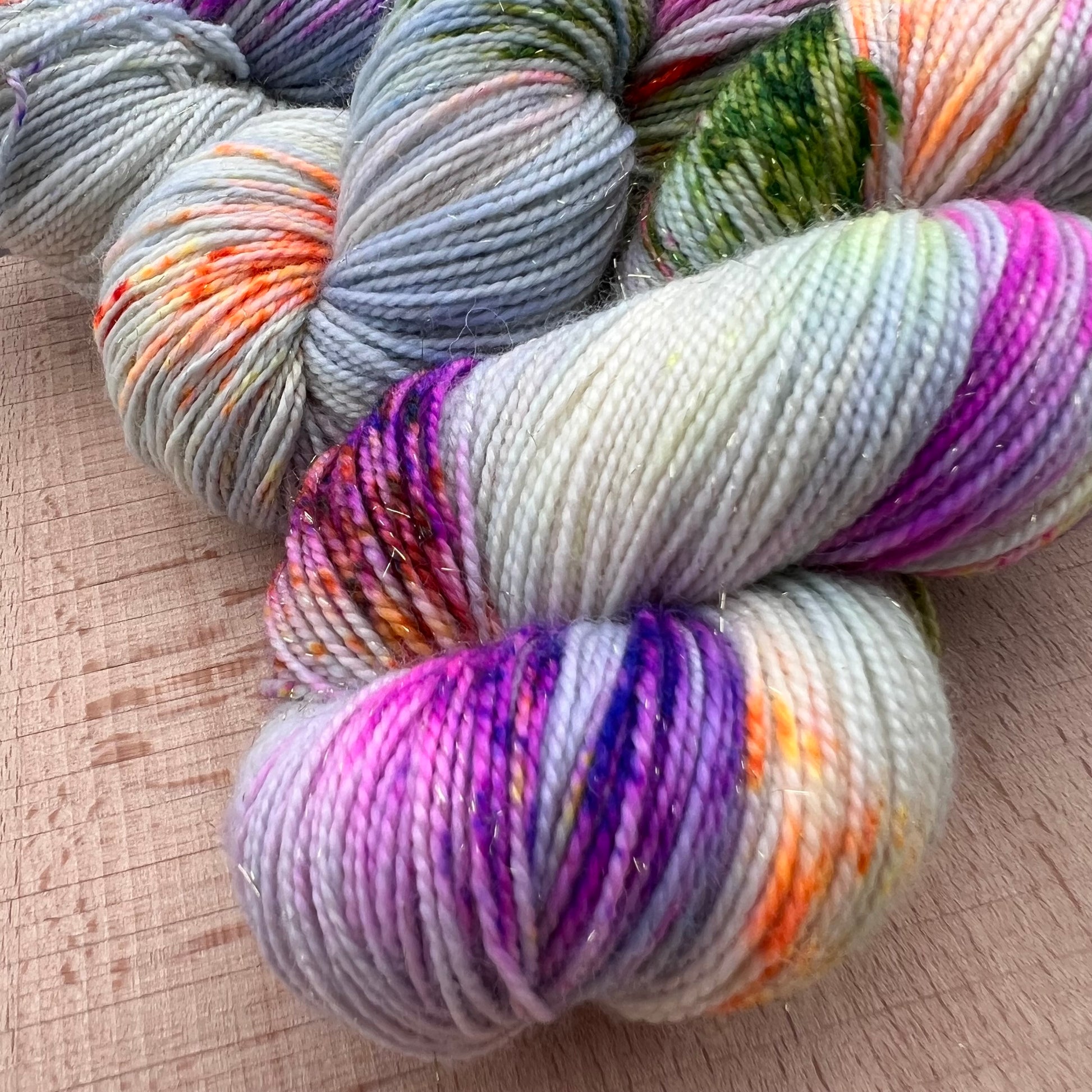 Garn fra Køge håndfarvet glimmersock farve: “Crazy Catlady”