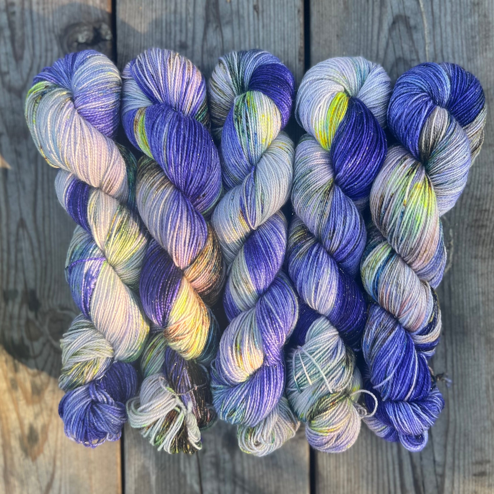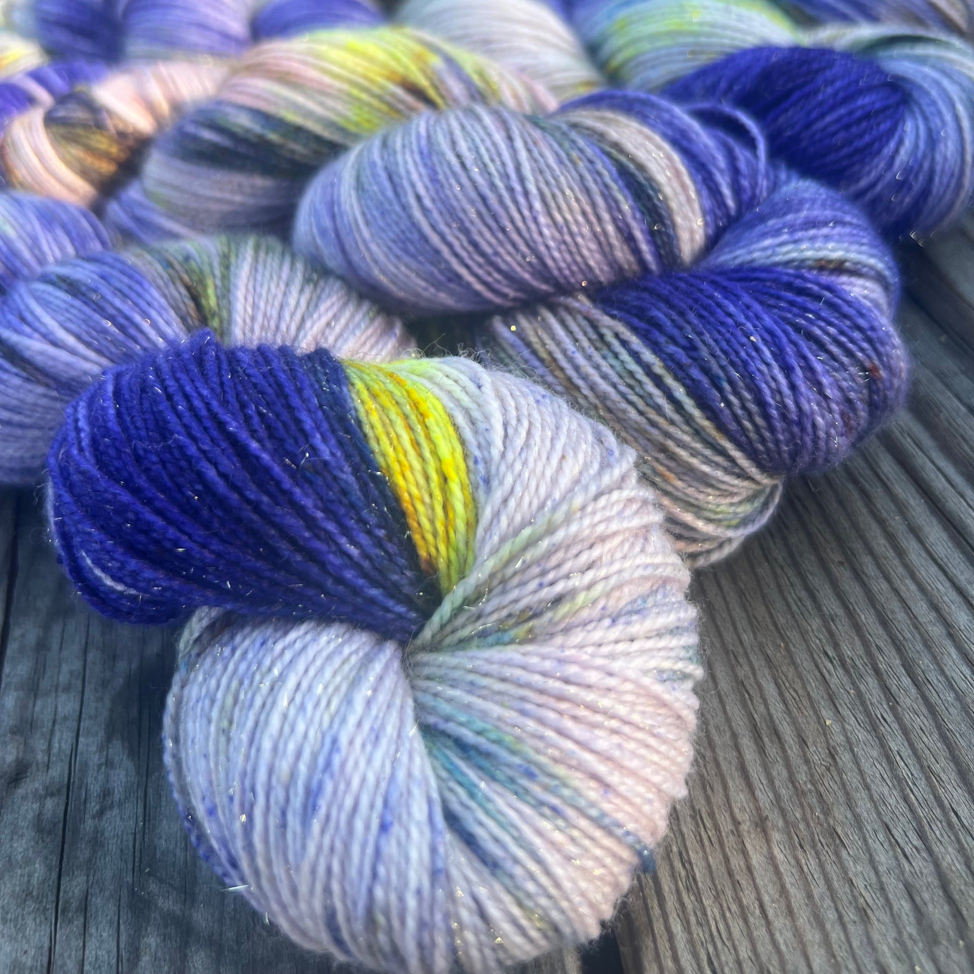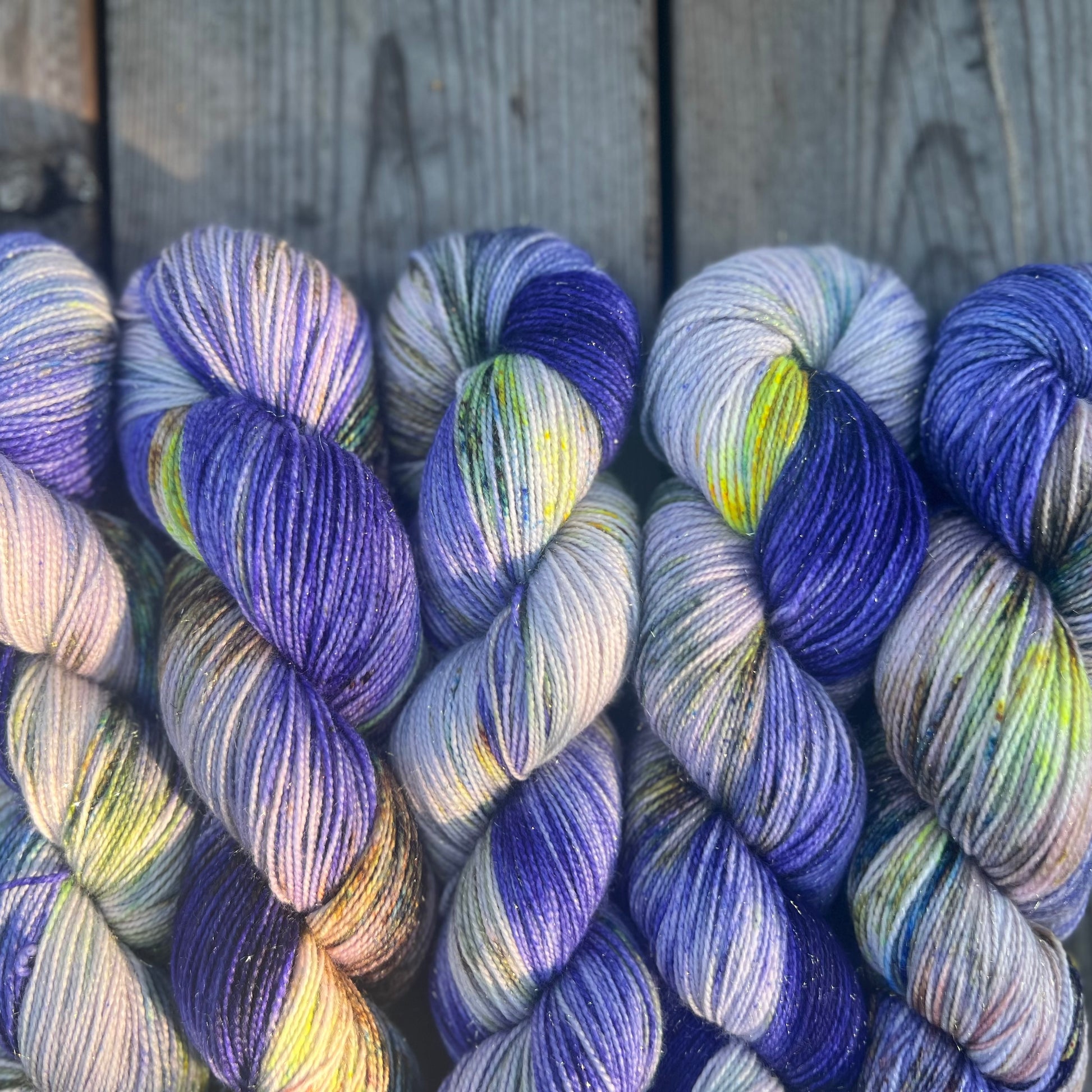 Garn fra Køge håndfarvet glimmersock farve: Sensommerhave