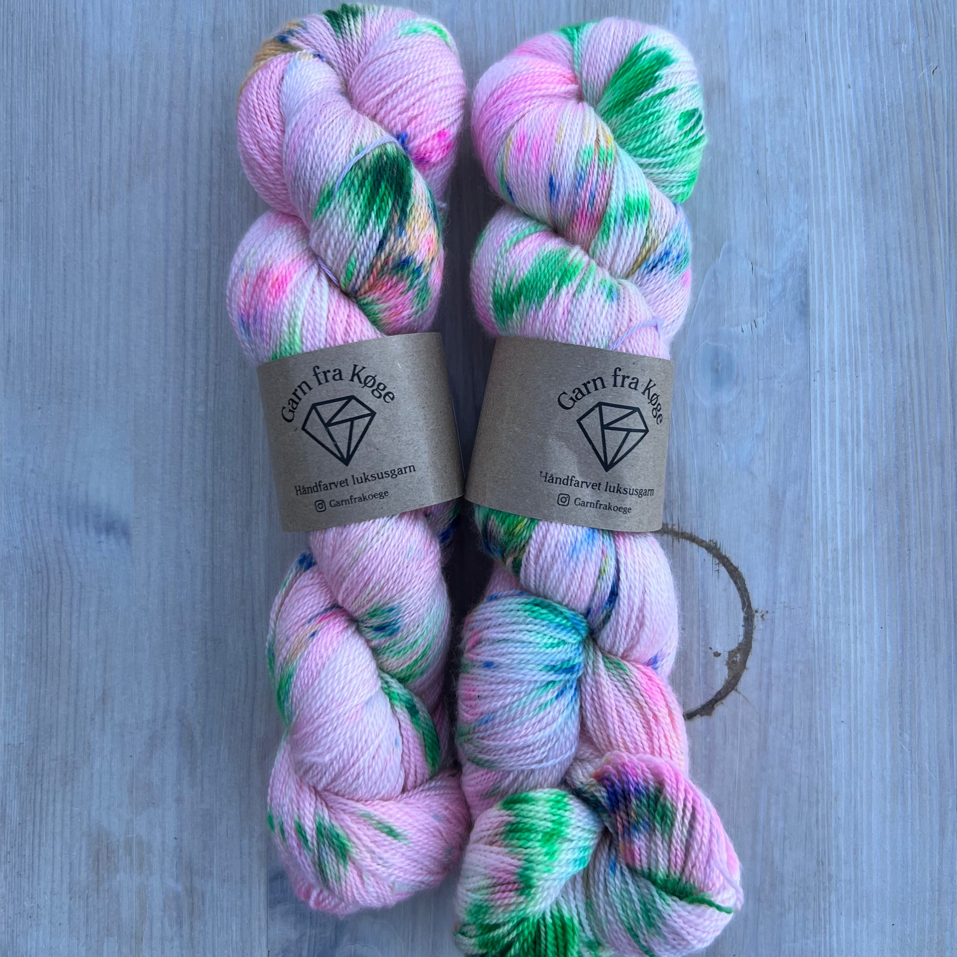 Husk: Håndfarvet garn kan indeholde overskudsfarve, undgå iblødsætning tilsæt evt eddike til dit skyllevand.
