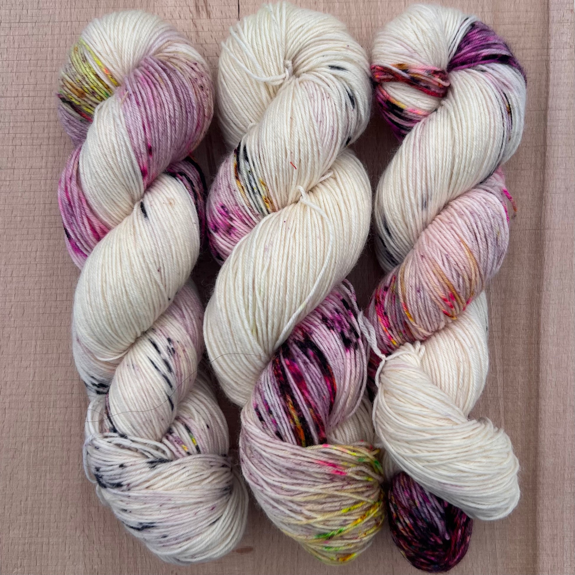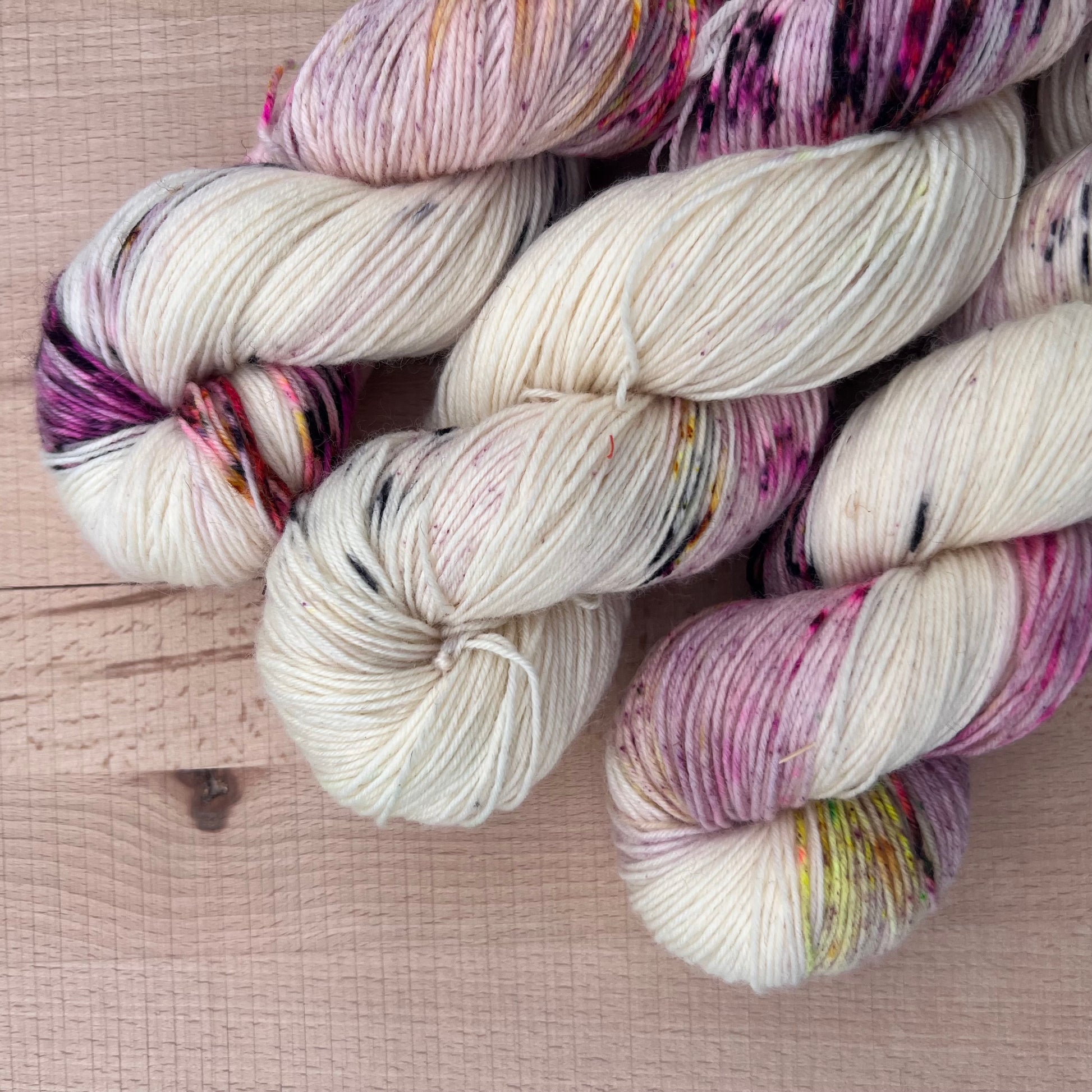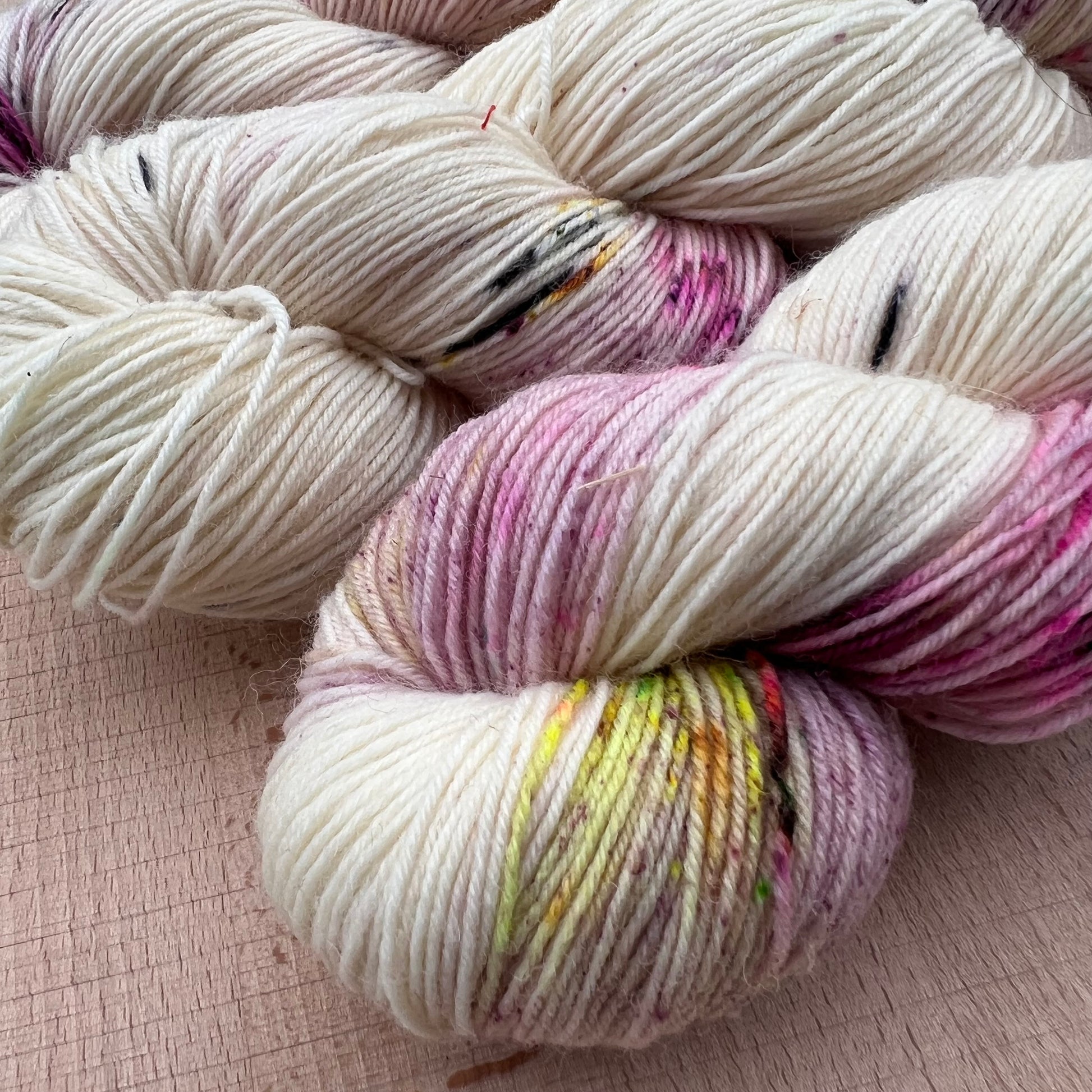 Garn fra Køge håndfarvet sokkegarn farve: “prikkedulle”
