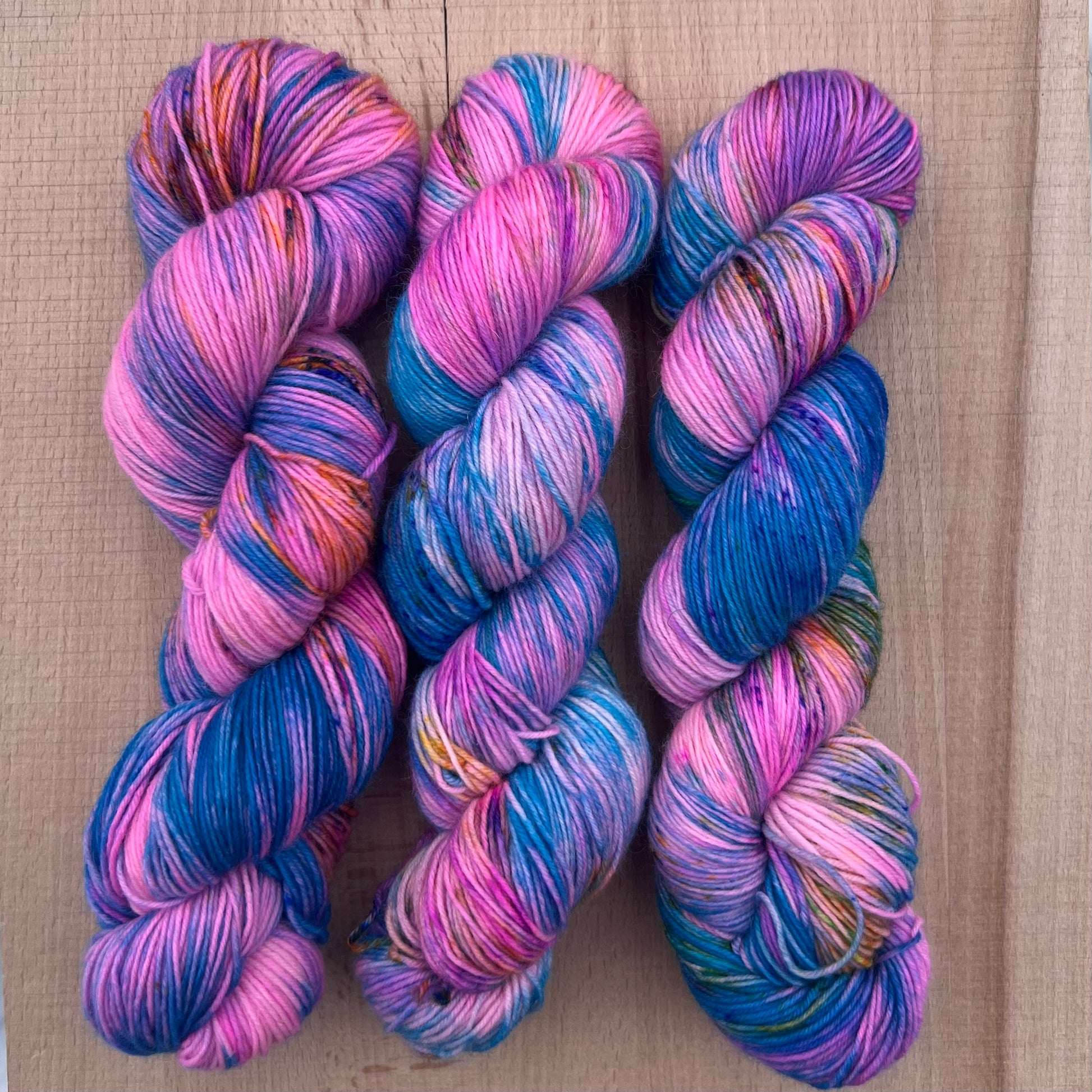 Garn fra Køge håndfarvet sokkegarn farve: “ Farveballade”