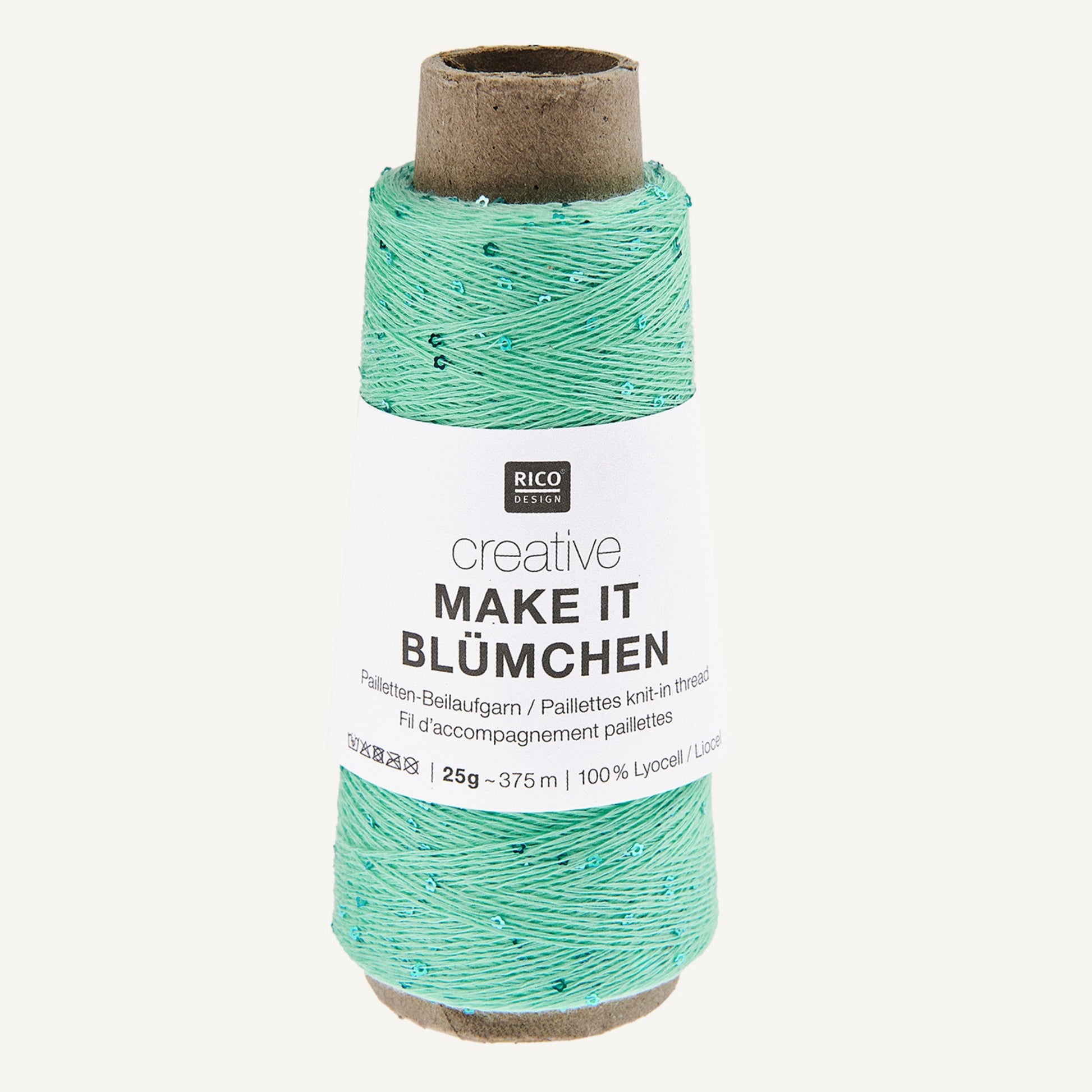 Make It Blümchen er et tyndt og fint effektgarn med bittesmå pailletter, formet som søde, små blomster. Denne følgetråd giver diskret glitter til alverdens strikke- og hækleprojekter, og tykkelsen påvirker ikke fastheden i arbejdet.